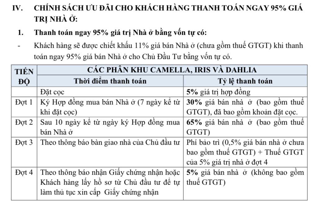 - Chiết khấu 1% khi mua 02 căn
